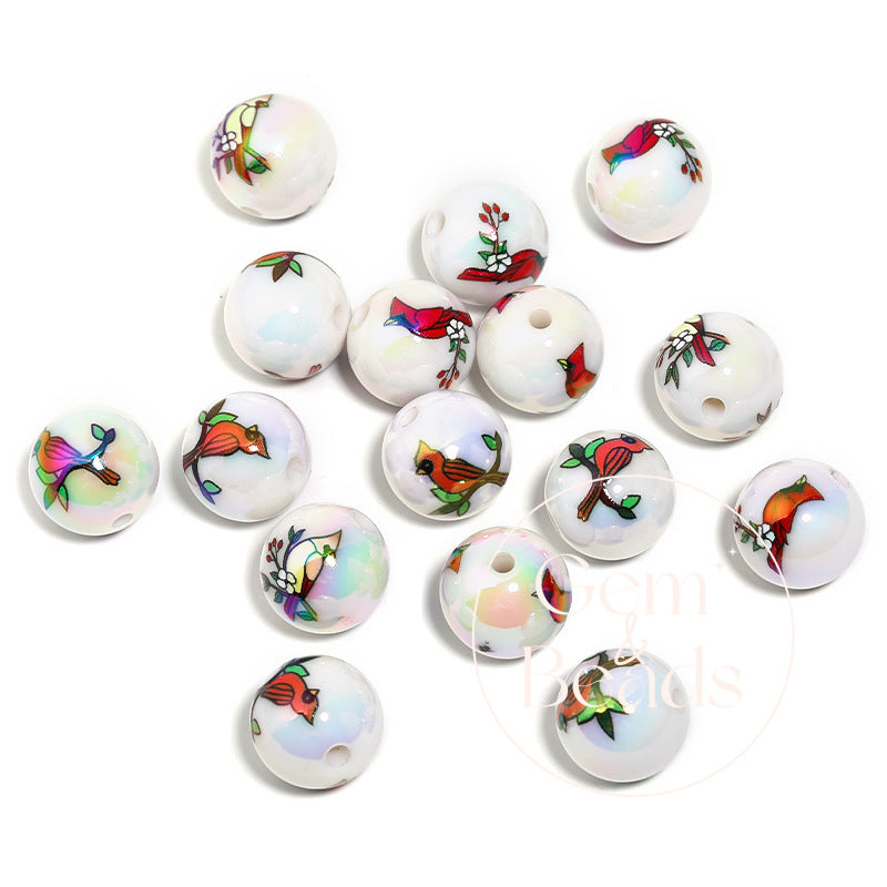 Woodpecker Animal Print Arcylic Beads (100pcs)