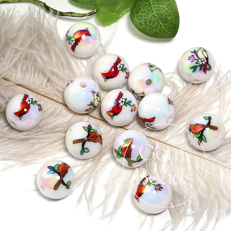 These unique acrylic beads feature adorable woodpecker-themed animal prints on a glossy, solid-color electroplated surface. Perfect for creative DIY projects like phone straps, keychains, bracelets, and bead pens, they add a fun and playful animal touch to handmade accessories. A top pick for crafters, sellers, and live-stream creatives looking for cute yet eye-catching designs.