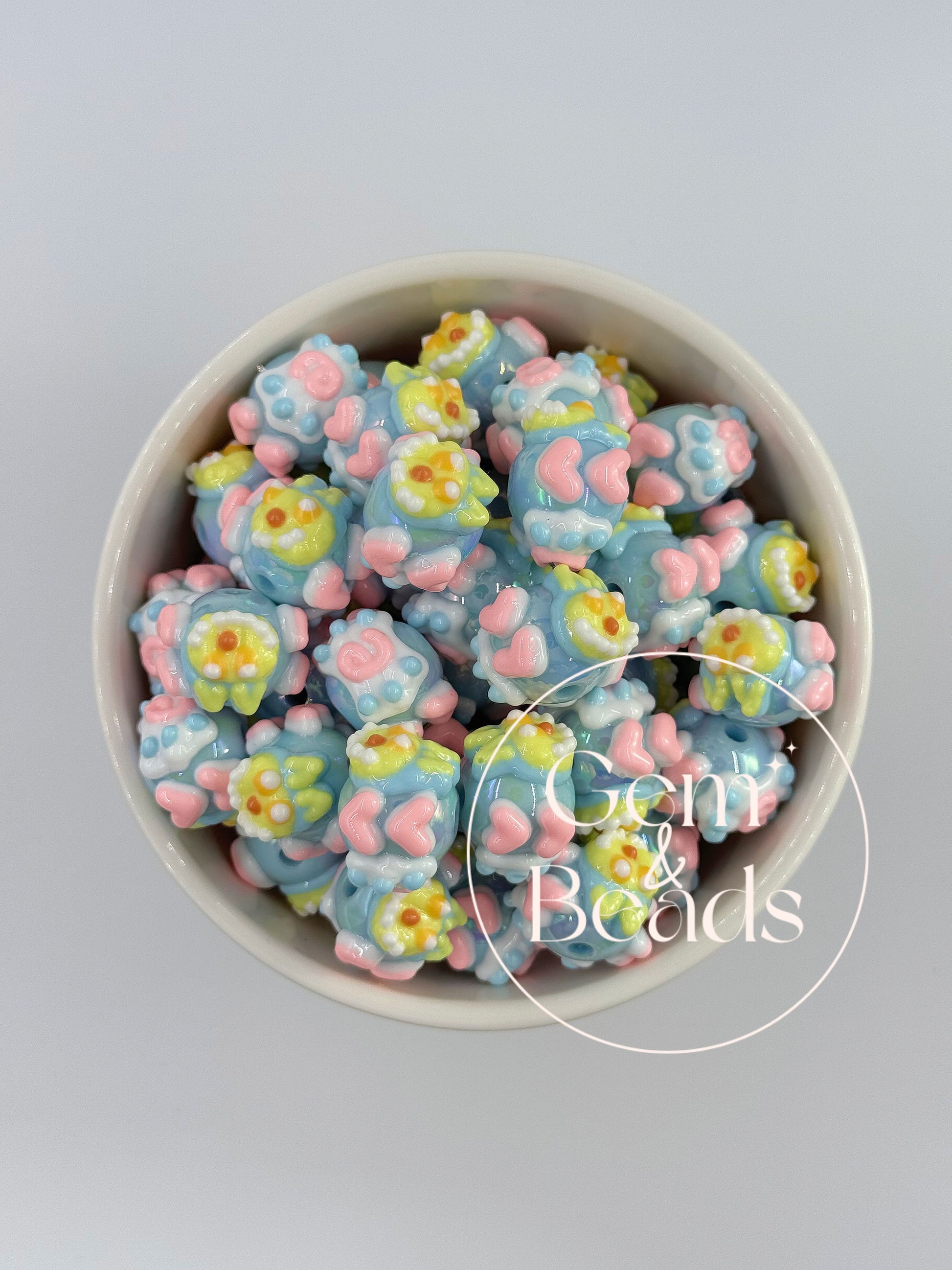 Flower Fancy Beads, Flower Beads With Rhinestones, Polymer Clay Beads, Spring Beads