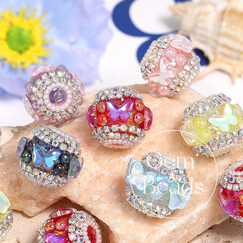 Gem Beads western region beads, princess butterfly beads, pearl diamond ball beads, rhinestone chain beads, DIY phone chain beads, bead pen accessories, material beads, butterfly rhinestone beads