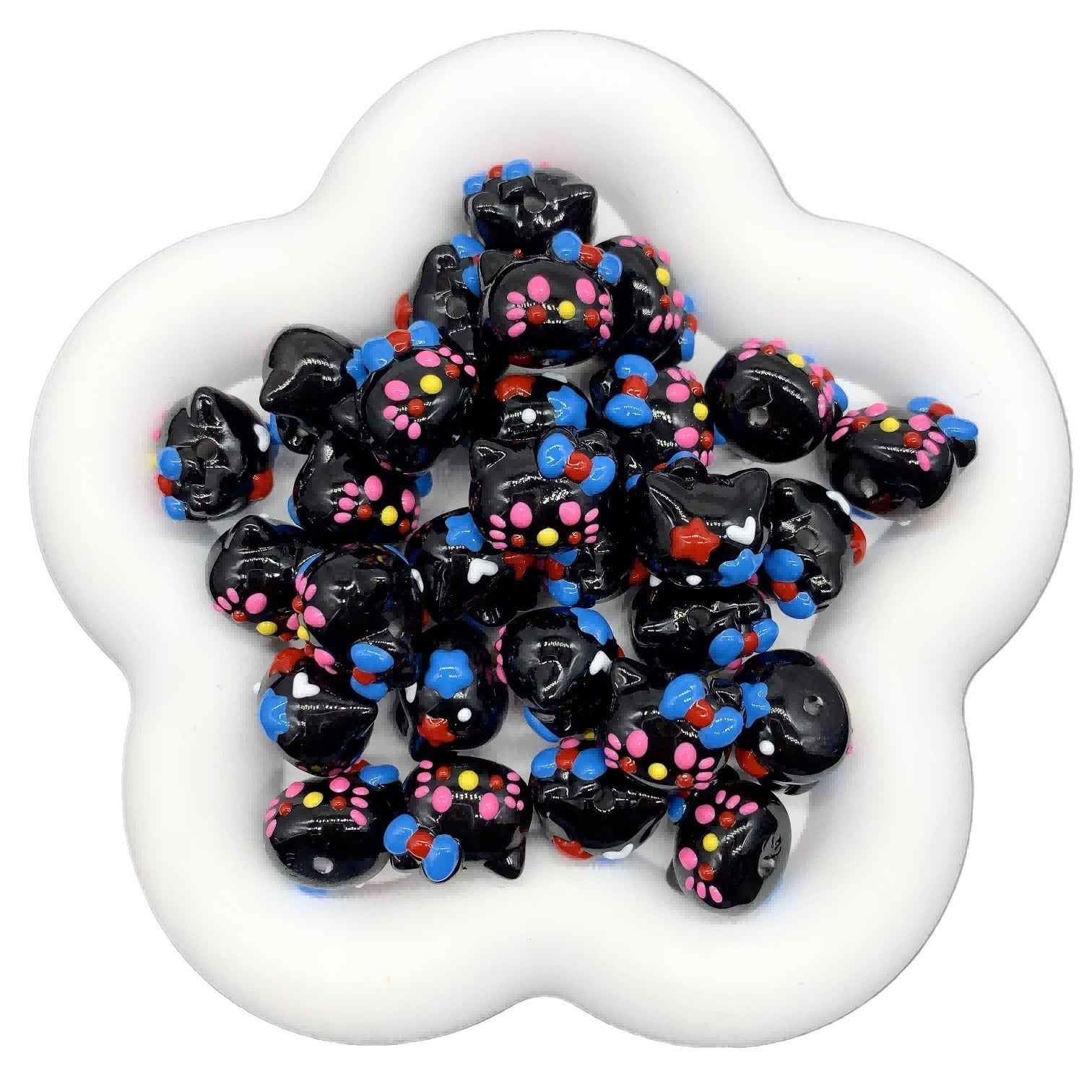 HK Kitty Black Painted Arcylic Beads (5pcs)
